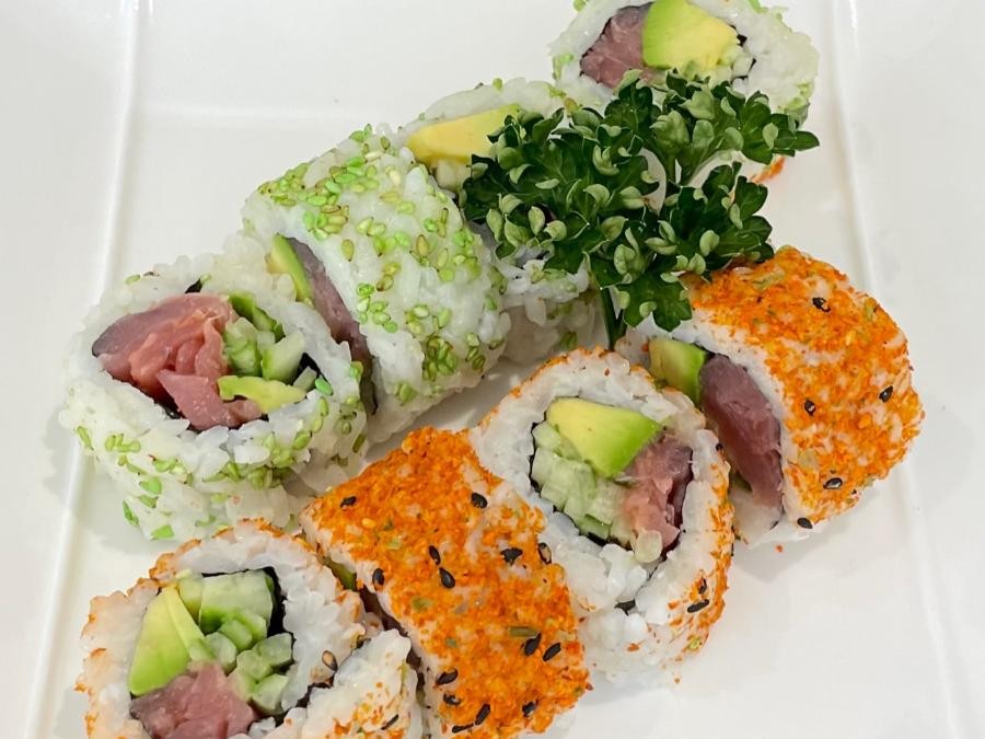Crevette Tempura, avocat, concombre : 6.50€ (6p)